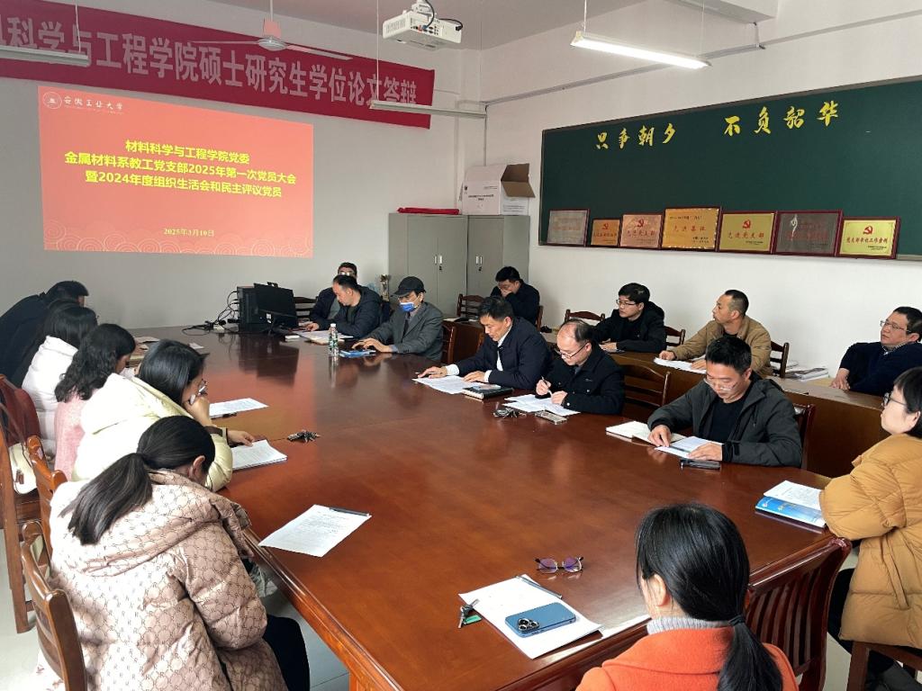 3月10日下午,金属材料系教工党支部召开2025年第一次党员大会暨2024年度组织生活会,m88官网党委书记杨建以普通党员身份参加支部组织生活会,副经理夏爱林到会指导。会议由支部书记王永强主持。