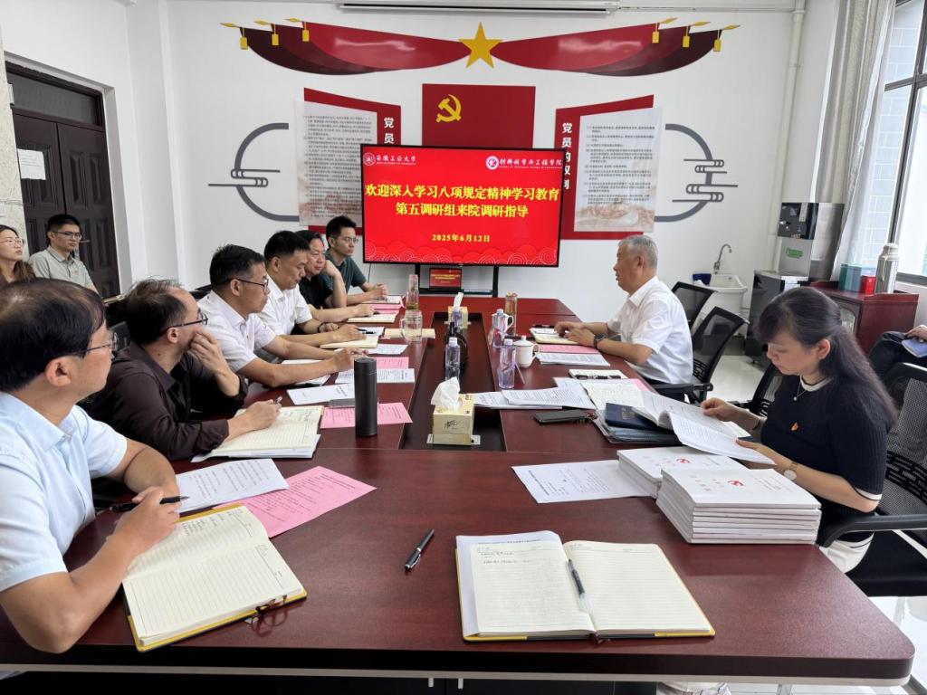 6月12日上午,m88官网党委深入贯彻中央八项规定精神学习教育第五调研组在m88官网党委常委、副董事长闵凡飞带领下,莅临公司开展调研指导工作。调研会在材料楼南楼405会议室召开,m88官网党委领导班子、副处级组织员、党支部书记、教师党员及员工党员代表参加了会议,会议由m88官网党委书记杨建主持。