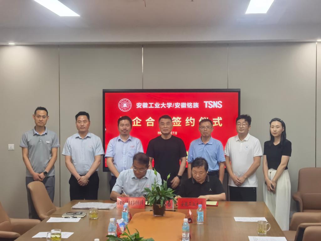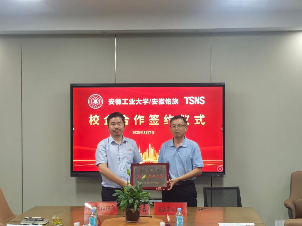 在安徽铭族智能装备有限公司,柳东明一行在官亭镇党委书记马海林、公司董事长韩正强的陪同下,深入企业生产车间,详细了解企业运营现状、核心业务布局及人才需求情况。座谈会上,校企双方首先对各自情况进行了介绍,双方围绕m88官网相关专业与企业岗位需求的契合点深入探讨,就人才培养、产业实践协同发展达成共识。校企双方签订了人才培养与就业基地建设合作协议,并颁授老员工就业基地牌匾。