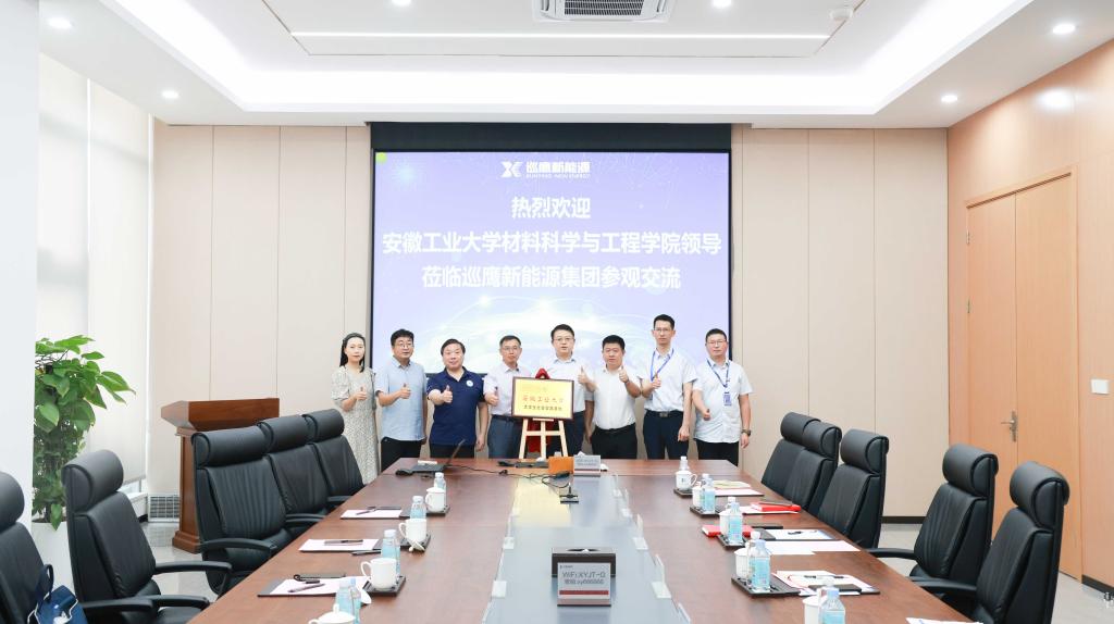 在安徽巡鹰新能源集团有限公司,柳东明一行依次参观了企业展厅及材料研发测试中心,并与集团副总经理茆海东、行政总监欧小卫、材料研究院经理宋二涛、人力资源总监李秋华,聚焦技术研发与人才培养等方面进行了深入交流。m88官网主动征询企业对人才培育的建议,并热情邀请企业来校组织招聘活动。公司向安徽巡鹰新能源集团有限公司授牌老员工社会实践基地。
