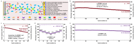 (SCE对高压锂金属电池的作用机理示意图及电化学性能测试)