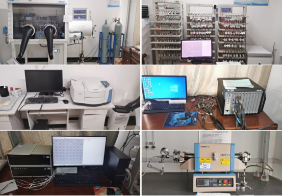 团队积极搭建高水平科研平台,已建成科研氛围浓厚、条件良好、大型设备齐全的科研平台。实验室主要仪器设备如下:大型手套箱(Braun)、Princeton电化学工作站、CHI电化学工作站、Autolab电化学测试系统、蓝电电池测试系统(360个通道)、原位红外光谱(Thermo)、原位X射线衍射、静电纺丝仪、高性能多通道全自动比表面与孔隙度分析仪、程序升温管式炉(6台)、小型真空气氛管式炉、稳态-瞬态荧光光谱仪等设备。部分仪器设备如下: