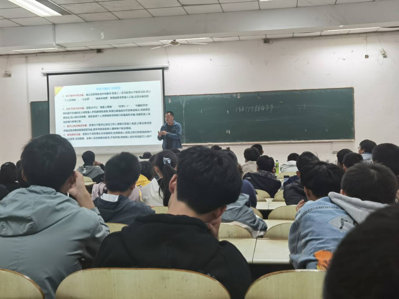 滕少聪为2020级新生讲解了什么是电信诈骗,诈骗分哪几种形式,告知同学们如何识别传销,讲述了网络贷款的案例,告诉同学们如何防范类似情况,要求员工要牢记“六个一律”、“八个凡是”。他还结合实例提醒同学们注意交通安全、食品安全、女生安全、禁止酗酒、防止溺水,警醒员工加强防范意识。最后他要求同学们注意防火、防盗,提高消防安全意识。