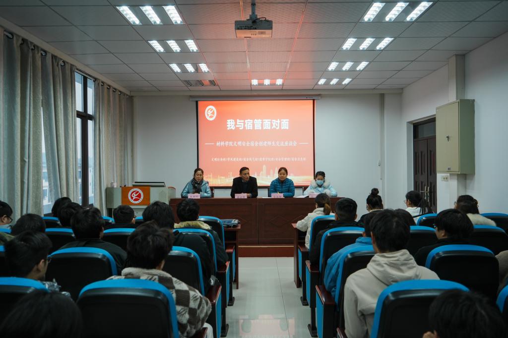 为进一步推进文明安全宿舍创建工作,加强员工文明安全意识培养,11月30日,m88官网联合后勤处召开“我与宿管面对面”文明安全宿舍创建师生交流座谈会。后勤处员工公寓管理服务中心主任涂必华、部分员工公寓管理员、m88官网党委副书记赵颖虹、全体辅导员及各年级员工代表参加座谈会,m88官网团委书记张佩佩主持会议。
