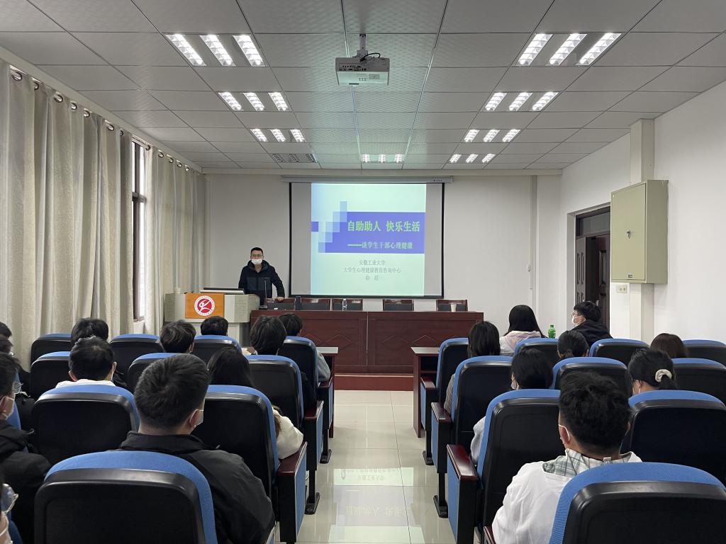 俞超老师以“自助助人 快乐生活”为主题,从“正确认识心理问题”、“常见的心理障碍识别”、“员工干部的‘攻心’之策”、“心理健康的自我调适”四个方面为同学们做了生动详细的讲解。他从学业、生活、情感、就业等方面娓娓道来,将心理健康专业知识与员工干部日常工作内容有机结合,进一步明确员工干部的角色定位和工作职责,强化心理危机意识,提高识别常见心理问题能力,全方位、多角度与同学们畅谈心理健康问题,分享心理学知识。员工干部们结合工作、生活分享感悟,俞超老师对同学开展心理工作时困惑与难点耐心解答,切实回应了同学们的需求。
