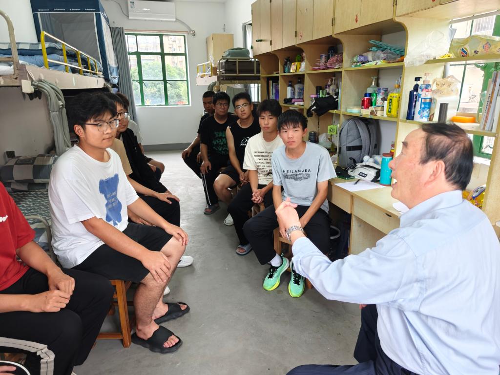 为更好地了解新生的学习、生活情况并给予针对性指导,10月13日下午,校关工委老教师胡源申,m88官网退休老教师洪永昌、袁晓敏一行来到佳山校区员工宿舍,深入m88官网24级新生宿舍开展走访交流活动。m88官网副经理李永涛带领新生辅导员们列队迎接来自公司关工委及m88官网的老同志们并对三位老师的到来表示欢迎与感谢。
