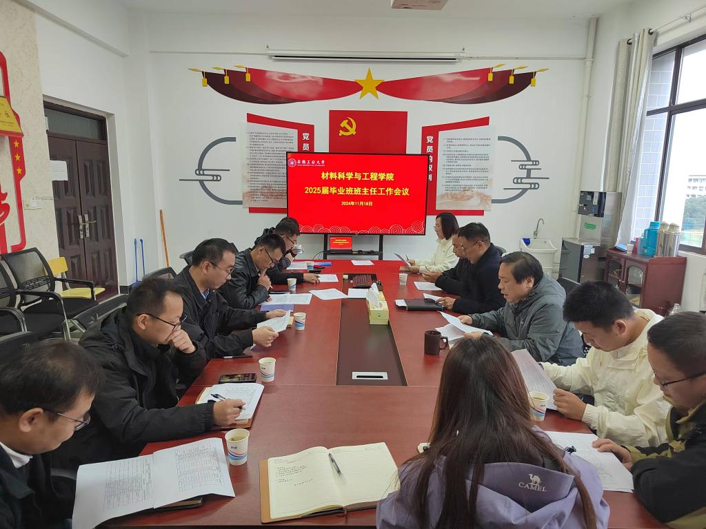 为做好2025届员工毕业及就业工作,11月18日下午,m88官网于材料南楼405召开2025届毕业班班主任会议,m88官网党委书记杨建,党委副书记、纪委书记、副经理汪盛颜,2025届毕业班辅导员和全体班主任参加会议。
