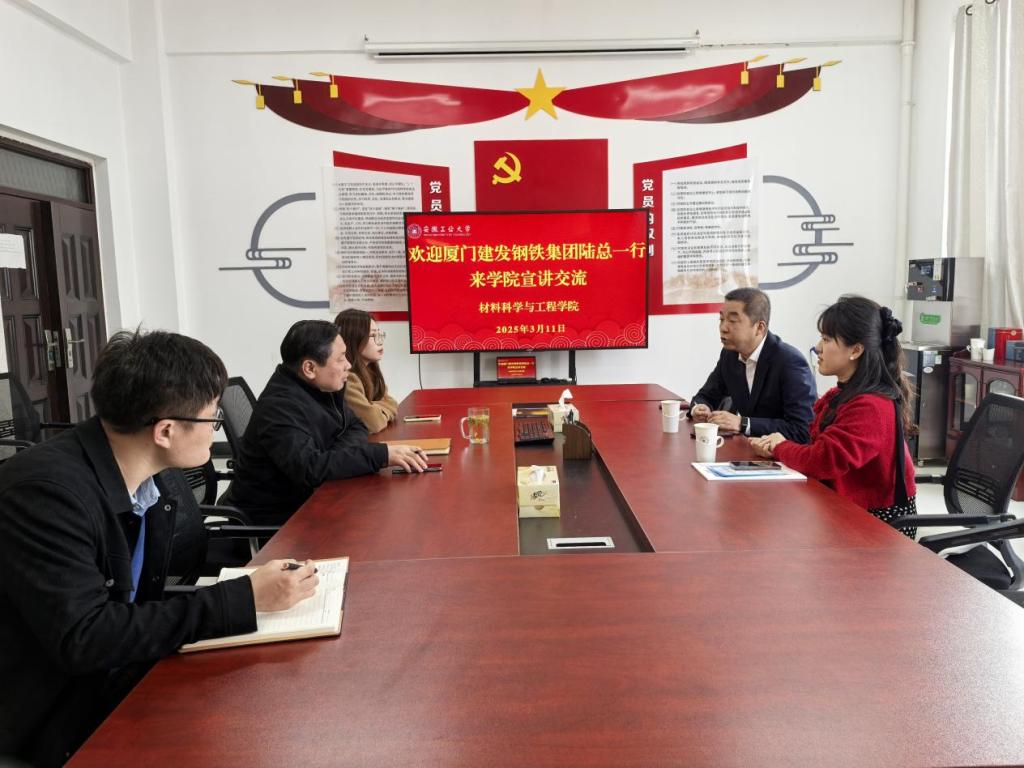 宣讲会前,汪盛颜及辅导员代表与厦门建发钢铁集团负责人围绕人才需求、校企协同培养、实习实践基地建设等议题展开深入交流。汪盛颜表示,公司始终坚持以社会需求为导向,致力于培养更多“专业扎实、实践能力强”的高素质人才。企业方高度认可公司的人才培养质量,并提出未来在实习实践方面深化合作的愿景。