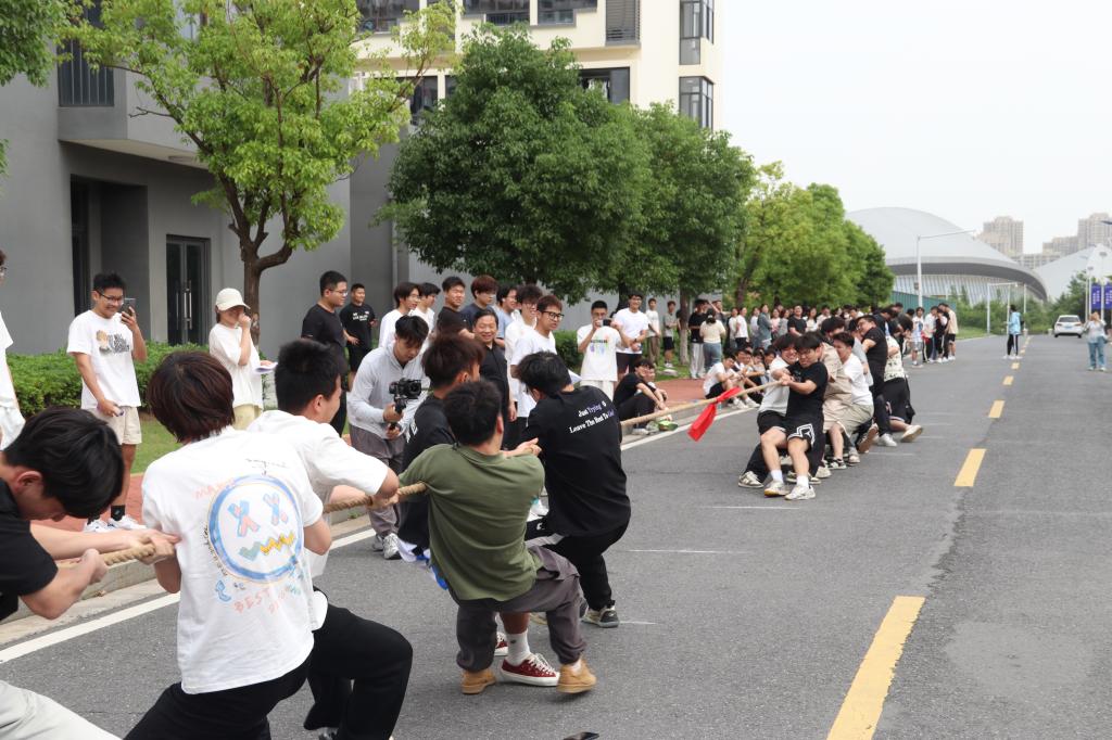 比赛现场气氛热烈,集体项目与个人项目交相辉映。拔河赛场高潮迭起,2021级毕业生代表队凭借默契配合勇夺冠军;跳绳比赛则以“绳舞飞扬”的创意编排赢得满堂喝彩。个人项目中,自行车慢骑选手在50米赛道"龟速"竞技,展现极致平衡力;踢毽子比赛来自无231班徐柳燕勇夺第一;袋鼠跳趣味赛区更是欢笑不断,辅导员与员工拔河友谊赛成为全场焦点。整场活动精彩不断、热闹非凡,加油声、欢呼声、笑语声此起彼伏。