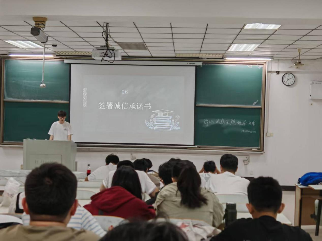 班会期间,师生围绕诚信的历史渊源、现实意义及实践路径展开探讨,并结合诚信应考、学术规范、网络诚信等热点议题进行辩论,同时学习了《民法典》中与诚信相关的法律条款。各班级通过签署《诚信承诺书》、集体诚信宣言等环节,进一步加深了员工对诚信的认知与认同。m88官网党委副书记、副经理、纪委书记汪盛颜强调,诚信不仅是一种道德品质,更应内化为个人品格、外化为实际行动,鼓励员工在日常学习与生活中践行诚信,做到言行一致、表里如一。