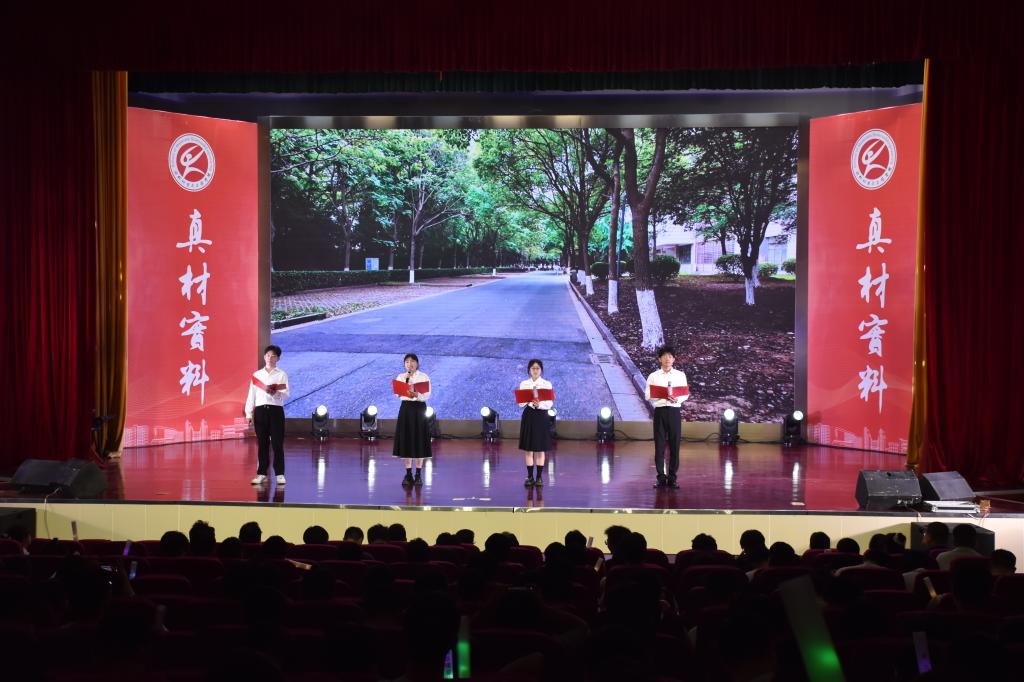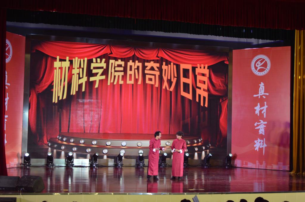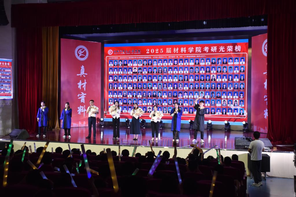 晚会以“青春启航·‘材’华横溢、凝‘芯’聚力·‘材’智飞扬、启梦星程·‘材’智未来”三大篇章为叙事主线,由公司师生精心策划编排,通过原创剧本创作、舞台美术设计、声光电技术集成等多维艺术表现形式,自编自导自演了十二个原创节目,全景式展现材料学子求学逐梦的成长轨迹,构建产学研融合的育人展示平台。相声《m88官网的奇妙日常》以实验室日常为原型,通过幽默诙谐的语言艺术,生动诠释了材料学子在科研攻关中的酸甜苦辣;集体诗朗诵《毕业了,我想...》将个人理想与科技强国战略深度融合,引发强烈共鸣;体育舞蹈《Latin Dance》通过青春灵动的舞姿,展现青年学子昂扬向上的精神风貌;小品《想不出剧本》以排练毕业晚会剧目为蓝本,通过戏剧化手法传递同窗情谊与师长期许;歌舞串烧以流畅的肢体语言演绎出别样风情,唤起了大家对大学时光的点滴回忆,熟悉的旋律在会场中回荡,不少观众轻声跟唱,沉浸在青春的回忆里;……当毕业班辅导员与毕业生代表合唱《凤凰花开的路口》时,全场师生挥舞手中的荧光棒激情互动,将现场氛围推向高潮。晚会通过温馨回忆、深情寄语与多彩节目,为毕业生们留下了难忘的夏日记忆。