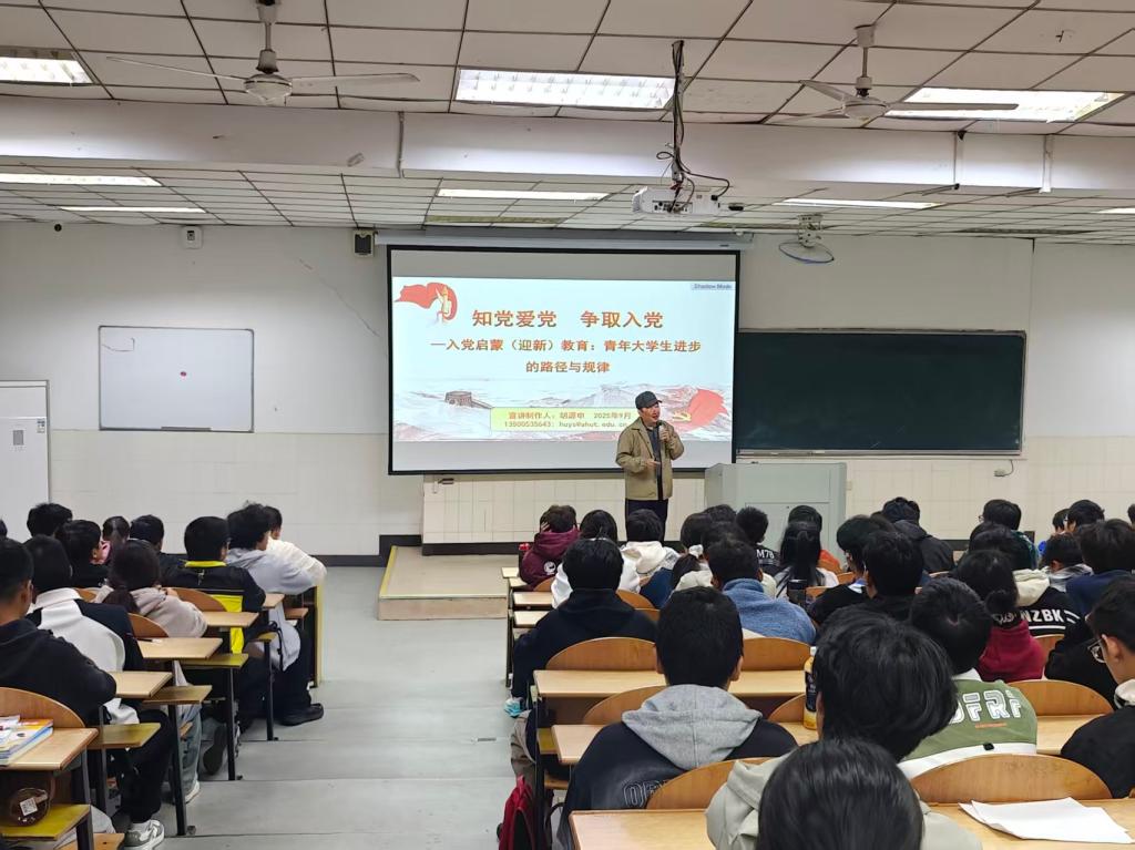 为切实加强新生理想信念教育,增进青年员工对党的认识和了解,引导广老员工积极向党组织靠拢。10月21日,m88官网邀请校关工委胡源申老师为2025级新生开展入党启蒙教育专题讲座。